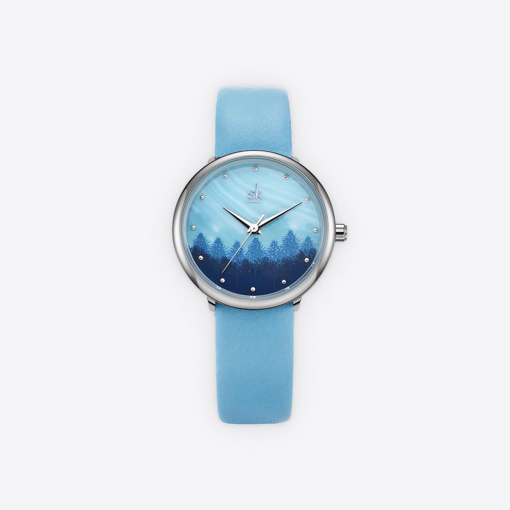 My main watch needed to go in for an overhaul, so I needed a watch to wear for a few weeks. This one is so nice that I am putting off my old watch for service! It’s so pretty and easy to wear, and the face is easy to read! I love the sky blue face and baby blue band, neutral but not boring. The slim leather band is comfortable and doesn’t feel heavy or sweaty like wider bands can feel on me. Even my watch snob husband said he loves it on me! Be aware it does tick, if that kind of thing bothers you. So happy with this purchase