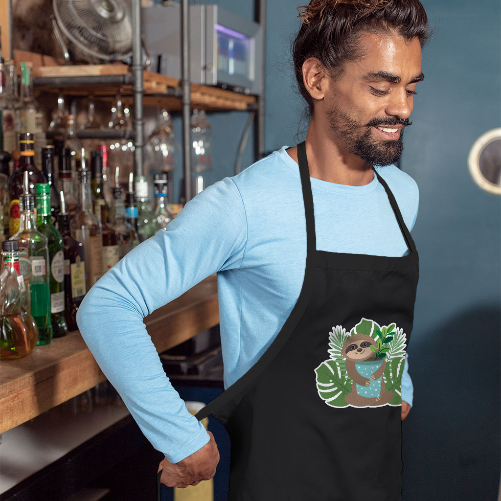 Unique design with an adjustable neck strap for the most suitable length. Cute Sloth Apron is Designed and printed in California.