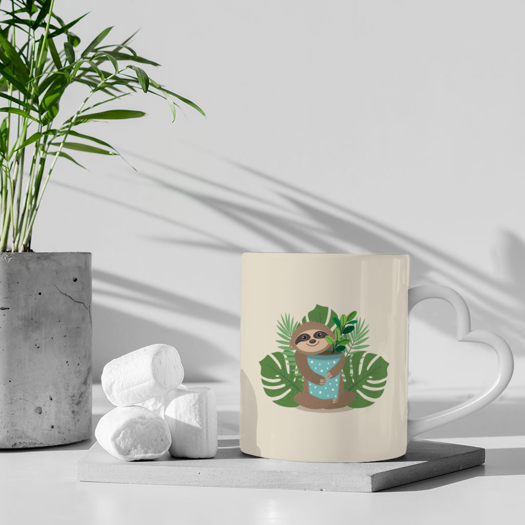 Cute Sloth Mug with Heart Handle uses high-quality ceramic and is made for durable, long-lasting use for all of life’s romantic moments. Plant Themed Mug with Heart Handle use professional coating to make it dishwasher and microwave safe. Designed and printed in California.