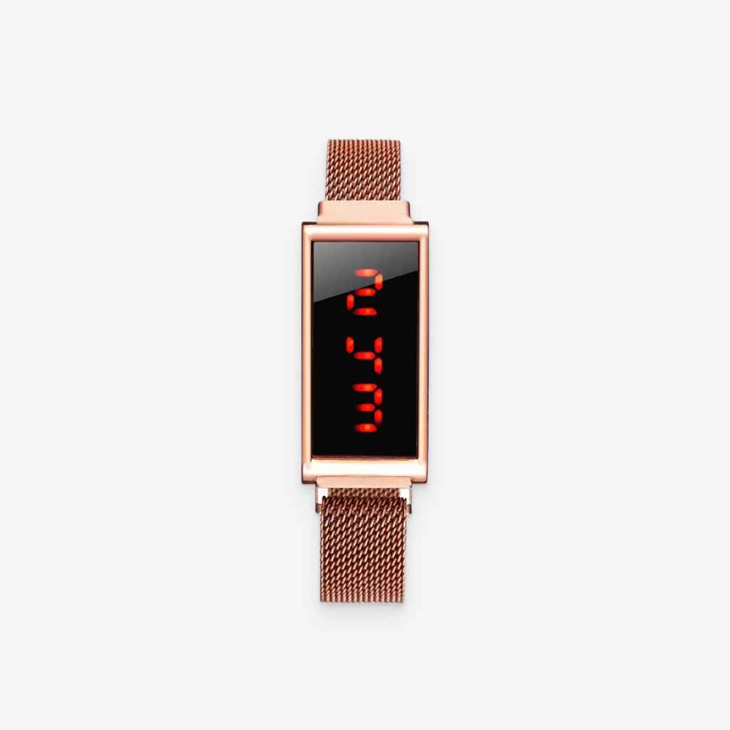 The magnetic metal strap of this watch is fantastic. It loosens instead of bending or breaking the little pins that hold the bands on. Insanely easy to put on, comfortable even in the heat.