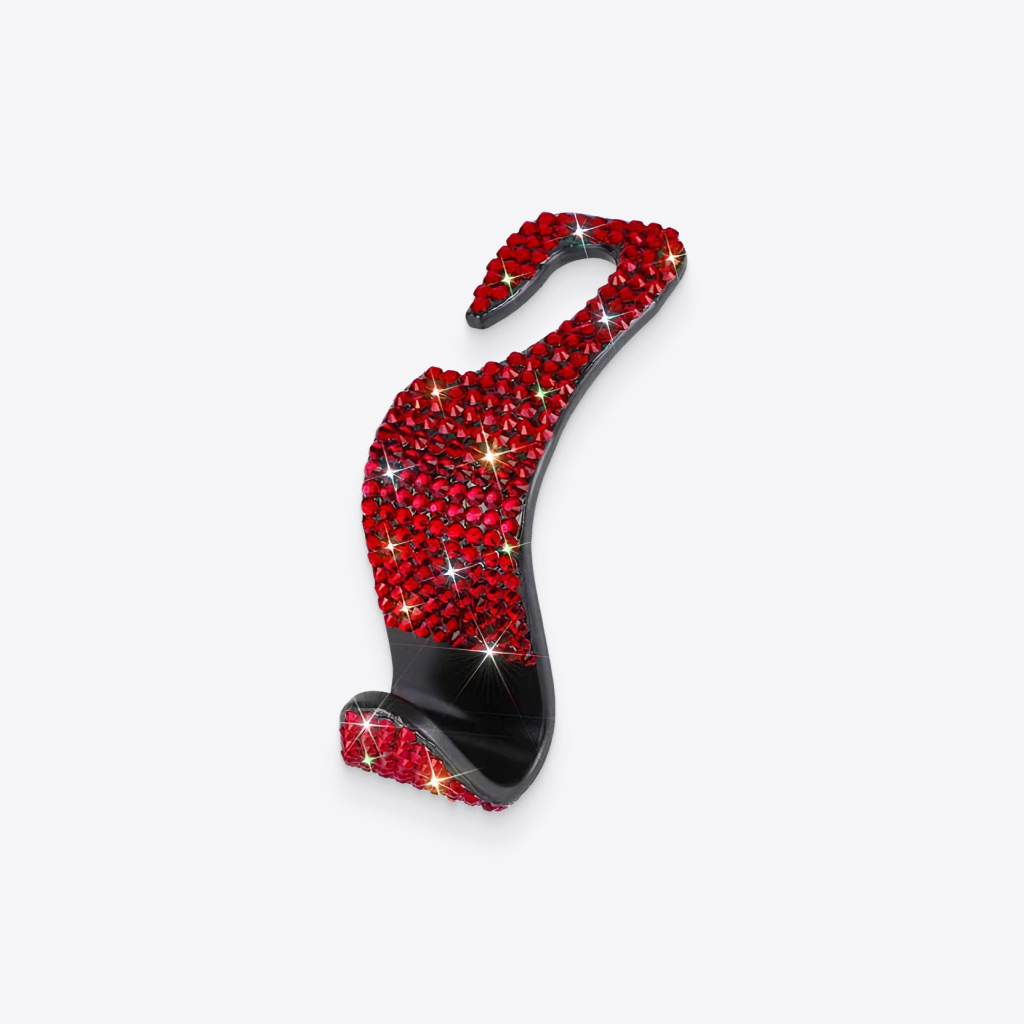 Cute bling hooks. The interior of my Jeep is red so these match perfectly.. stands out. Exactly as described. Keeps bags off the floor of the auto