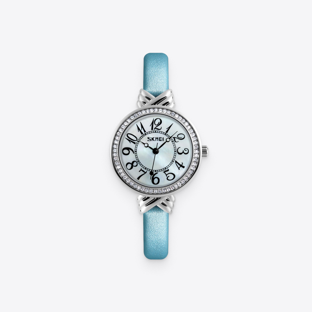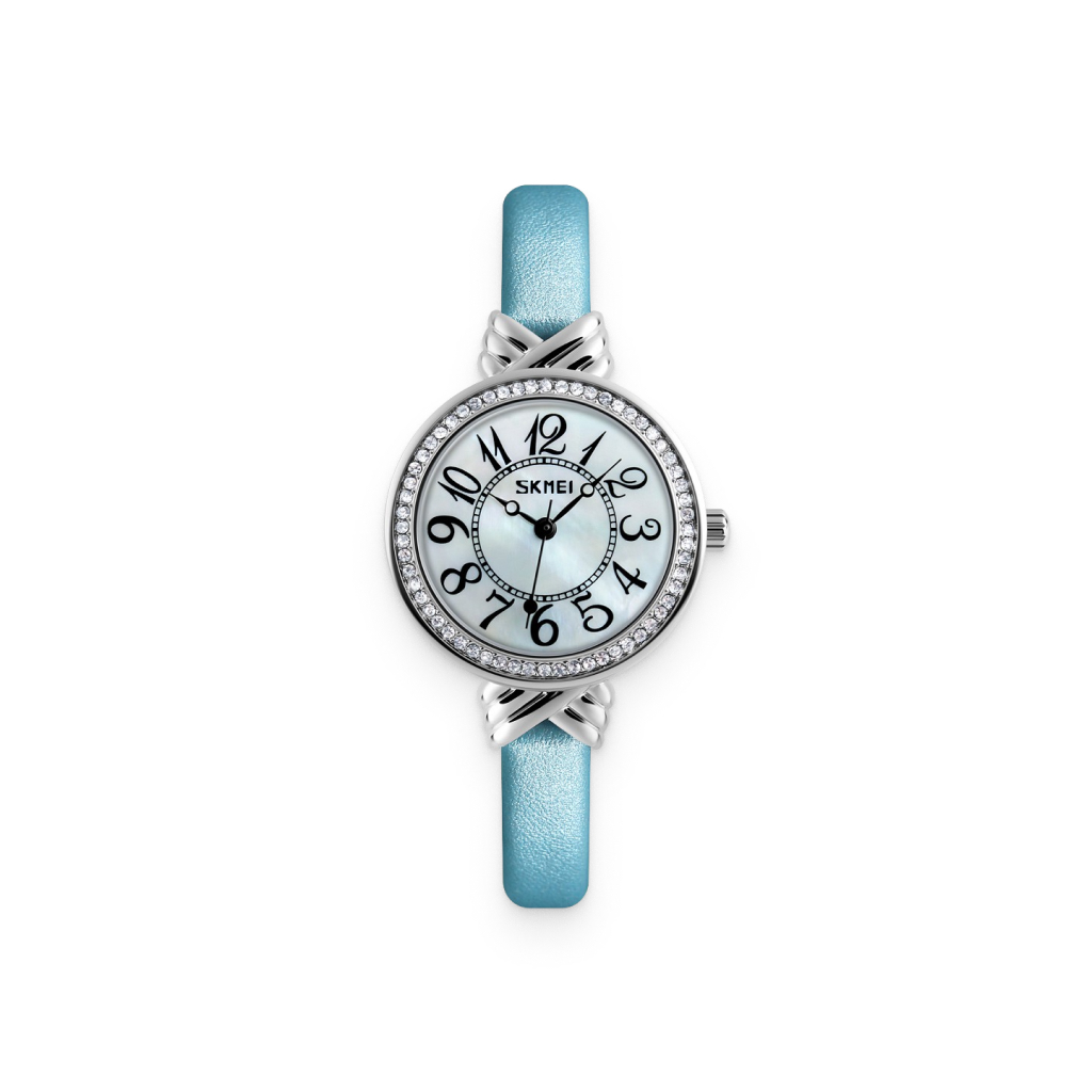I love this watch, It is exactly what I was looking for. Face of the watch is beautiful and the light blue leather band really complements it. I have received several compliments on it. I would buy it again.
